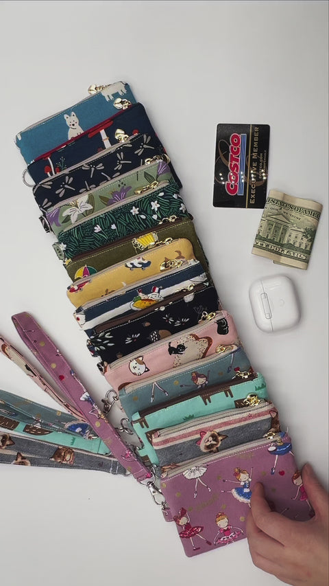 Crafted from 100% cotton canvas fabric, this double zipper pouch is a whimsical solution to your everyday needs. Measuring 4 inches high by 5.2 inches wide, this change purse has a 100% cotton lining that adds a touch of luxury while keeping your essentials secure. The pouch features a slip pocket where you can store your credit card and driver’s license. The detachable wrist strip can also be taken off and be used as a key chain.