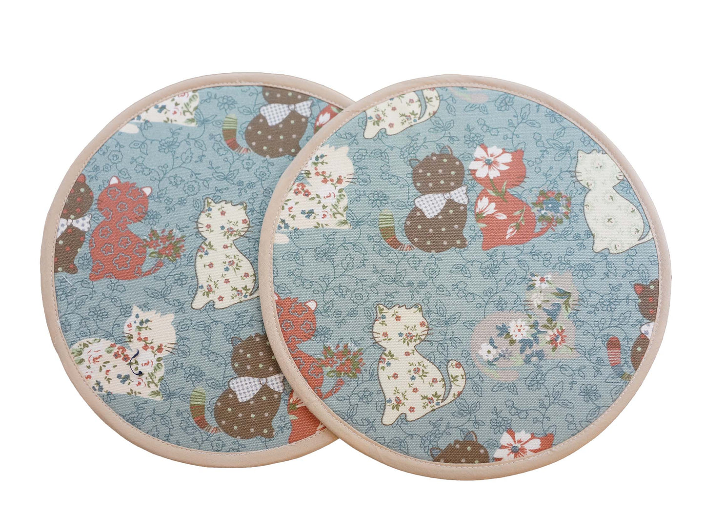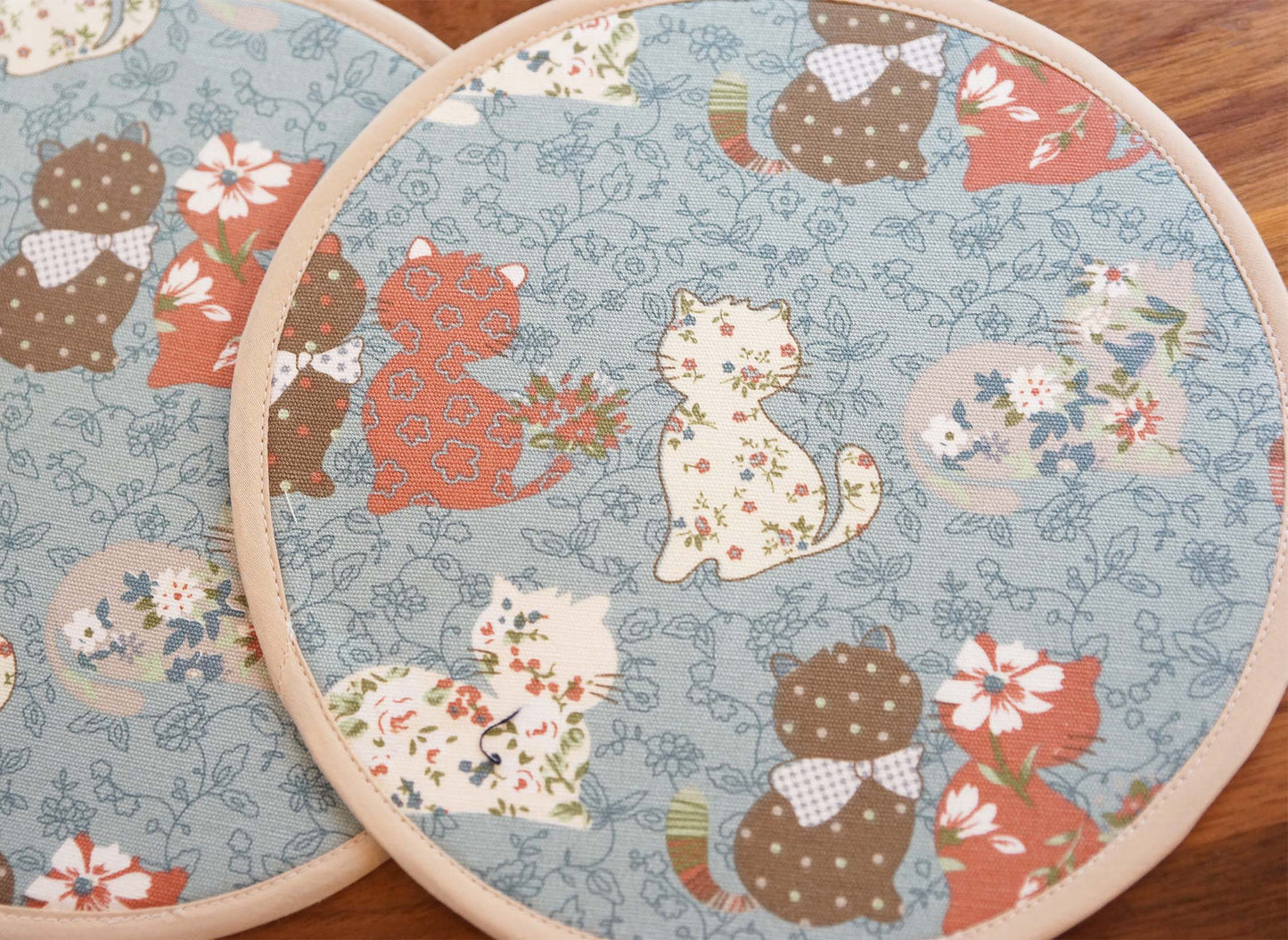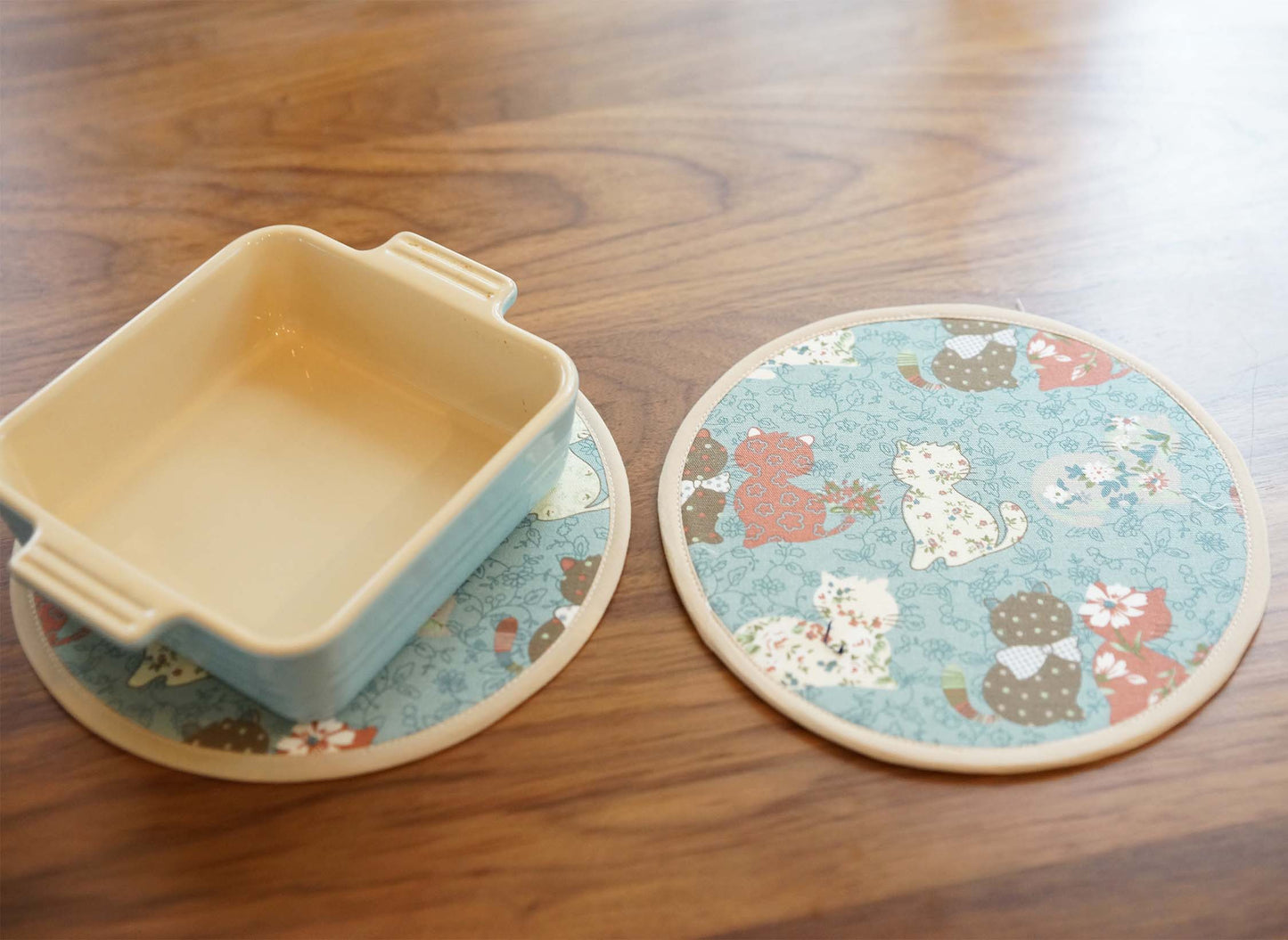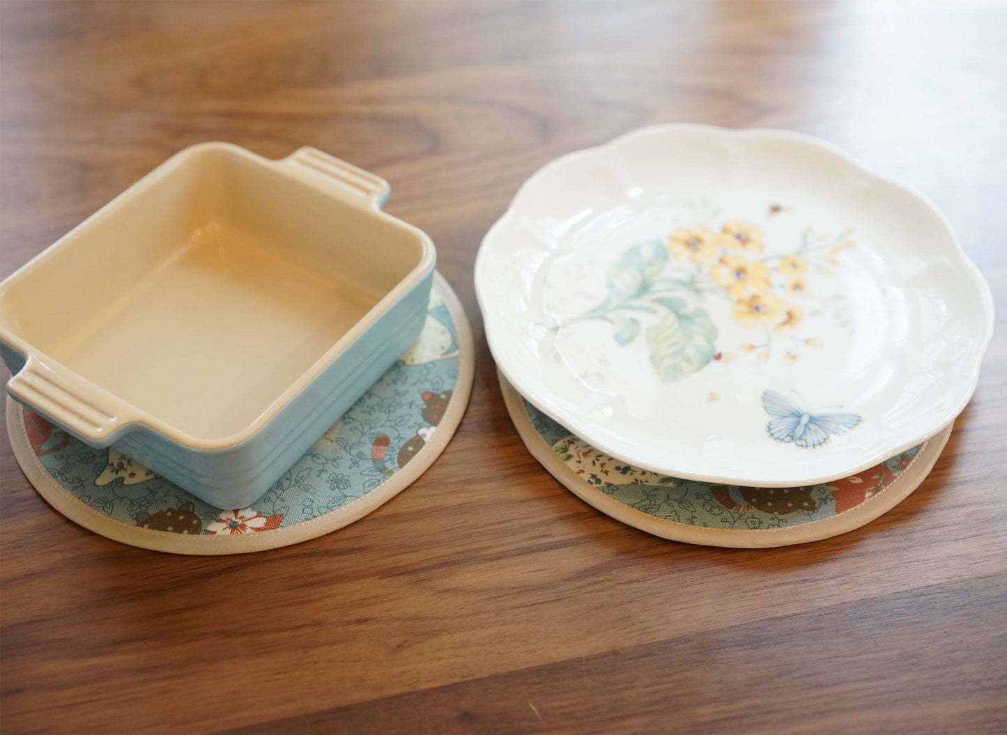 This handmade reversible round fabric trivet is a great addition to your home. The trivets are composed of three layers. I use the premium 100% cotton as the exterior fabric. The 300g cotton in the middle layer is quite absorbent and thick enough to protect your furniture. And the trivets are sewn with a 0.3’’ wide binding to give them extra beauty.