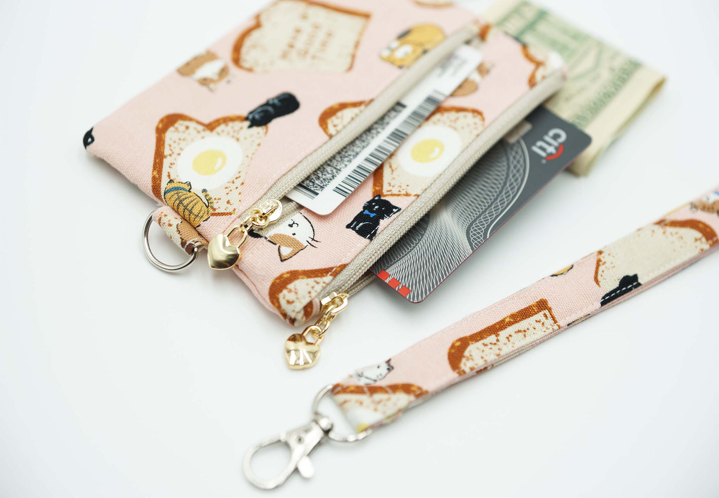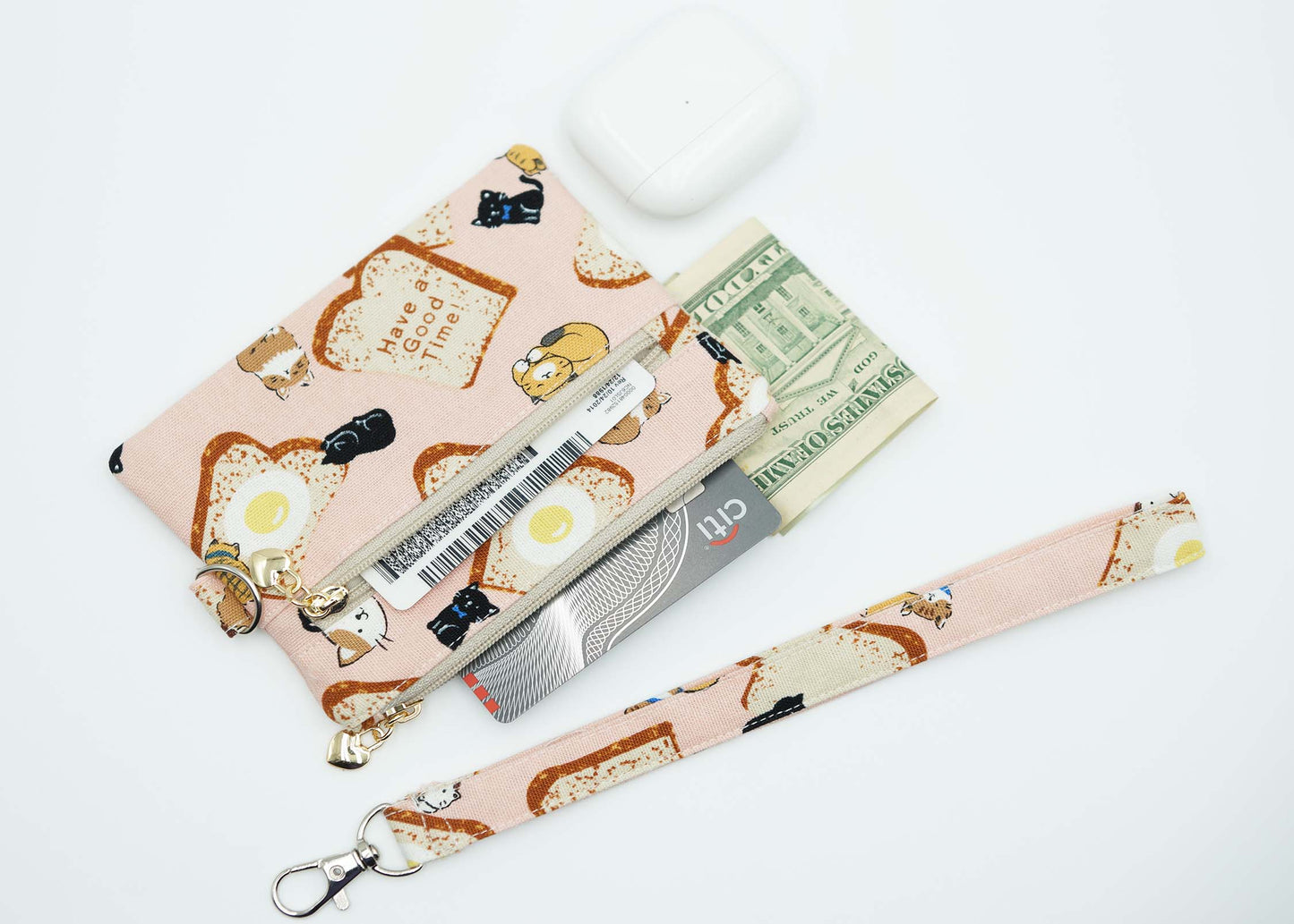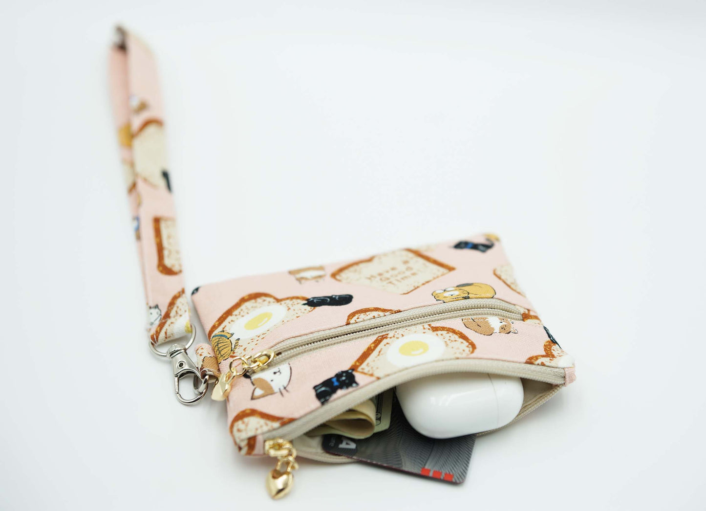 Crafted from 100% cotton canvas fabric, this double zipper pouch is a whimsical solution to your everyday needs. Measuring 4 inches high by 5.2 inches wide, this change purse has a 100% cotton lining that adds a touch of luxury while keeping your essentials secure. The pouch features a slip pocket where you can store your credit card and driver’s license. The detachable wrist strip can also be taken off and be used as a key chain.