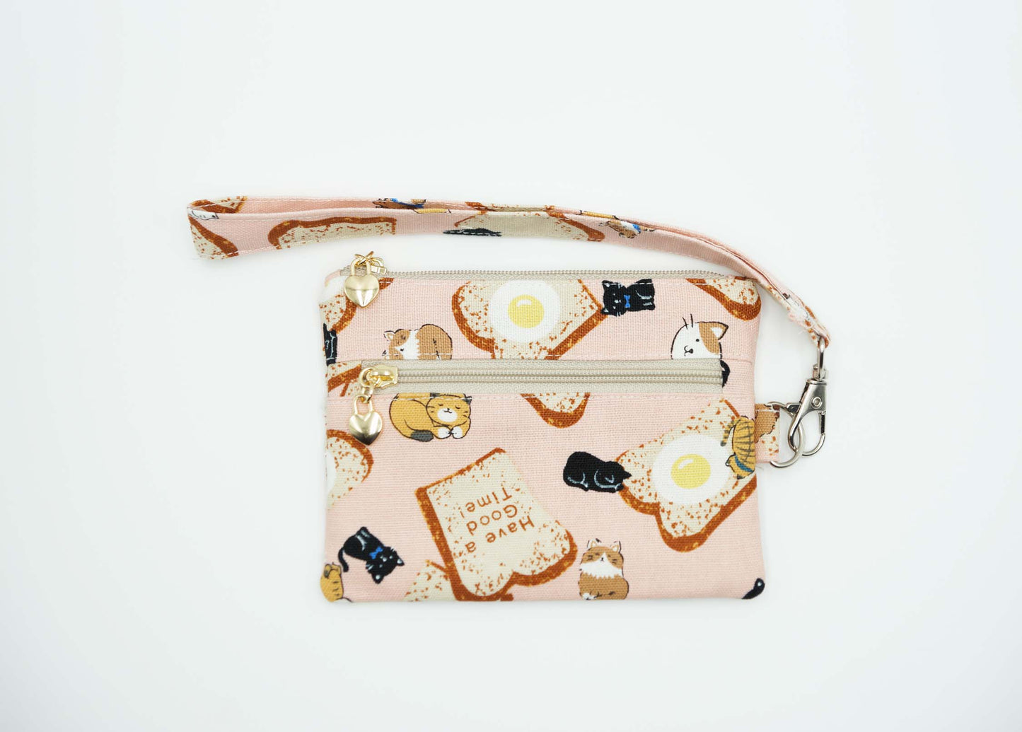 Cats and Bread Coin Pouch, Double Zipper Wallet, Purse for ID Cards