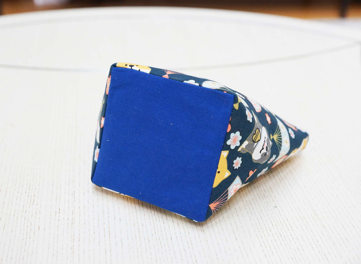 Made of durable cotton canvas fabric with fused interfacing. The basket is a cube shape with a boxed bottom that allows the basket to stand on its own so it can be placed on any flat surface.