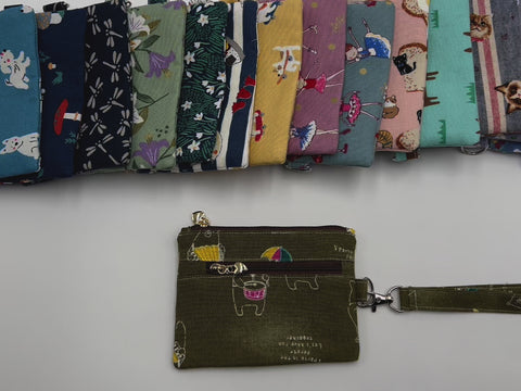 Crafted from 100% cotton canvas fabric, this double zipper pouch is a whimsical solution to your everyday needs. Measuring 4 inches high by 5.2 inches wide, this change purse has a 100% cotton lining that adds a touch of luxury while keeping your essentials secure. The pouch features a slip pocket where you can store your credit card and driver’s license. The detachable wrist strip can also be taken off and be used as a key chain.
