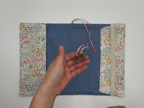 Take off the pendants before washing your book cover. Gentle hand wash or cold gentle machine wash, and warm iron if needed.