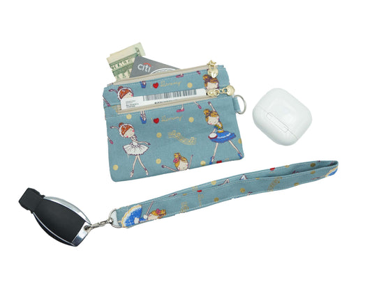 Blue Ballet Girl Coin Pouch, Double Zipper Wallet, Purse for ID Cards