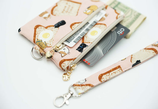 Cats and Bread Coin Pouch, Double Zipper Wallet, Purse for ID Cards