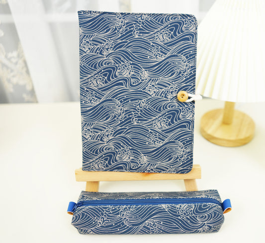 Ukiyoe Waves Fabric Planner, A5 6-ring Refillable Journal