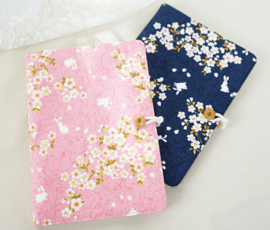 Pink Cherry Blossoms Fabric Planner, A5 6-ring Refillable Journal